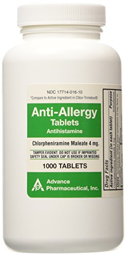 Title : Anti-Allergy Antihistamine Chlorpheniramine Maleate 4 mg Generic for Chlor-Trimeton Allergy 1000 Tablets per Bottle 2 PACK Total 2000 tablets
