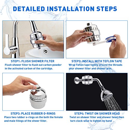 - ★ HIGH QUALITY AND REMOVABLE FILTER:including 1 extra shower filter replacement cartridge.The high-quality shower filter won’t lower existing water pressure,ensure maximum filtration in water.