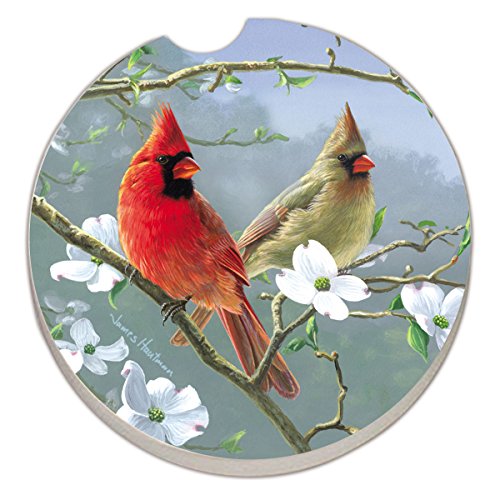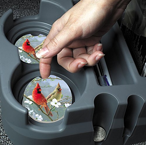 Counter Art Absorbent Stoneware Car Coaster, Beautiful Songbirds Cardinals