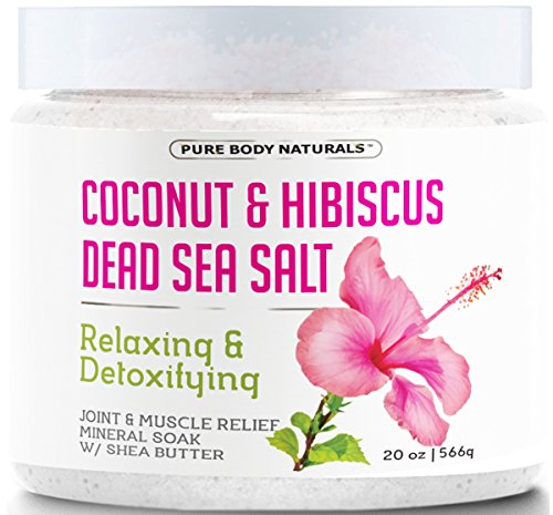 Coconut and Hibiscus Dead Sea Bath Salts, Relaxing Mineral Bath Salts for Sore Muscles by Pure Body Naturals, 20 Oz