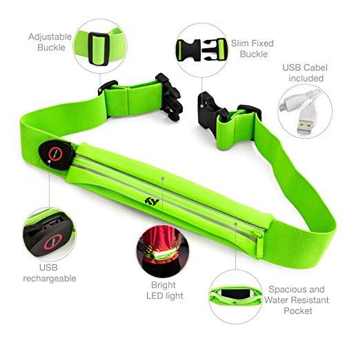 Sport2People Reflective Running Gear - Waist Fanny Pack with USB Rechargeable LED Light for Best Visibility and Safety - iPhone 6 Plus Workout Belt for Runners - Fitness Walking & Cycling Accessories