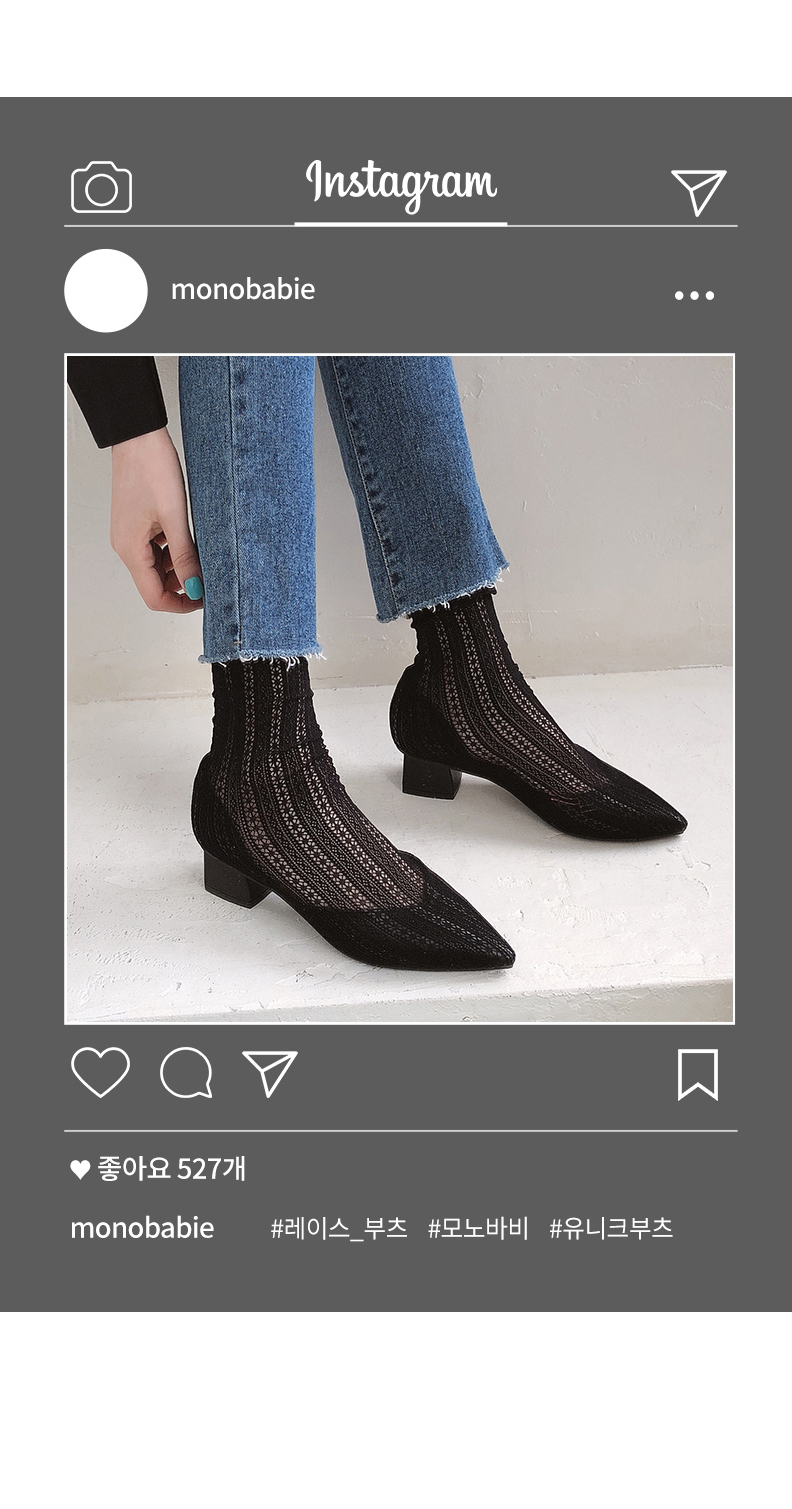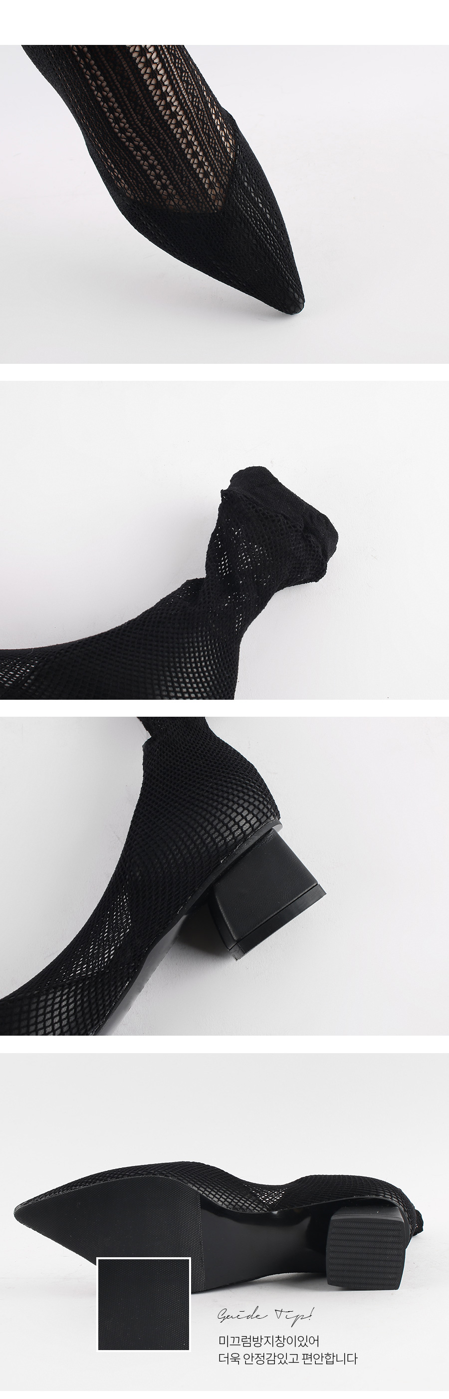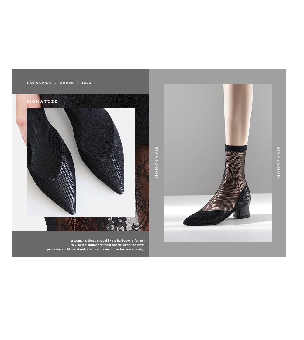 두가지 느낌의 메쉬소재로 제작된 앵클부츠입니다.