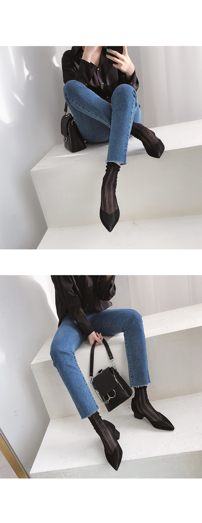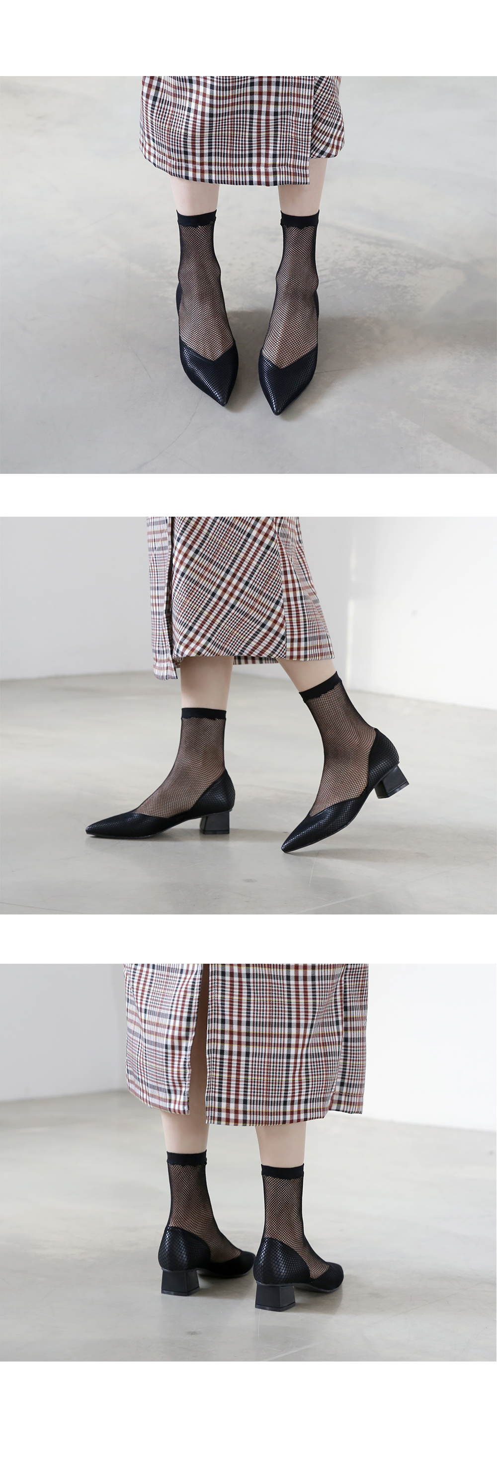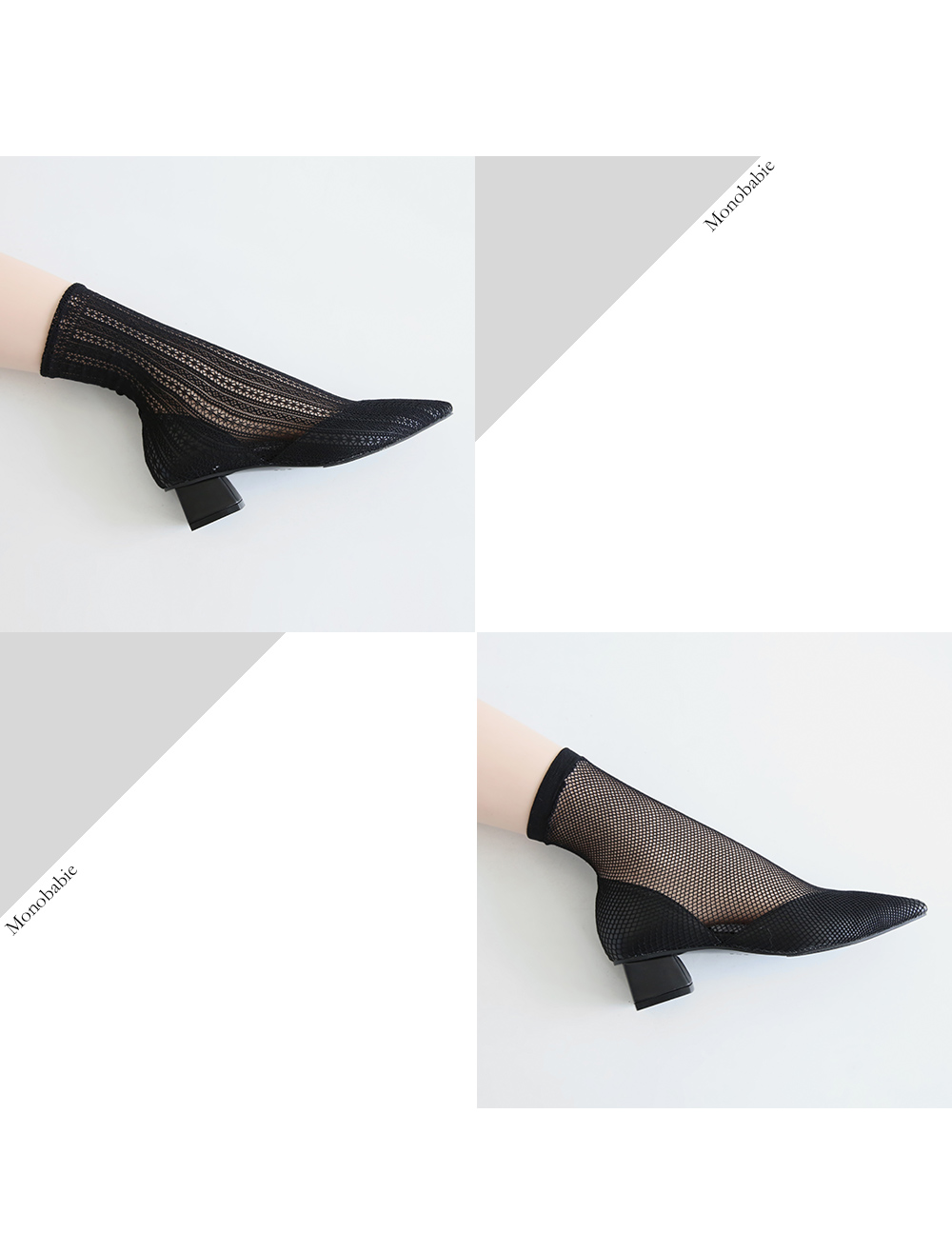 두가지 느낌의 메쉬소재로 제작된 앵클부츠입니다.