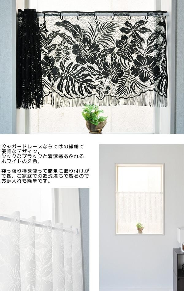 | 人気のボタニカル柄をジャガードレース柄で表現し、裾部分にフリンジをあしらいました。つっぱり棒を使って簡単に取り付けることができ、家庭洗濯もできるので使い勝手がとても良いのも魅力!!やさしい風に揺らぐ軽やかさとレース特有のエレガントな風合いで、インテリアをお洒落に飾ってくれます★ |