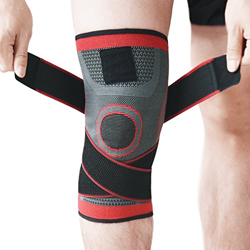 Knee Brace,Compression Knee Sleeve,Non-slip Adjustable Knee Brace Wraps with Pressure Strap and Knee Protector for Running,Sports,Joint Patella Pain Relief,Arthritis and Injury Recovery- Single