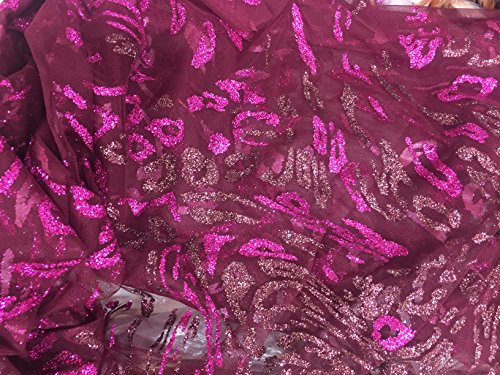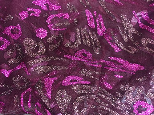 c Fancy Burgandy Tulle Fabriwith Burgandy / Azalea pink Glitter Design ~ 2 Yds~58"wide