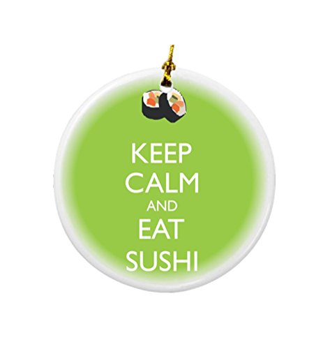 Rikki Knight Keep Calm and Eat Sushi Lime Green Color Design Round Porcelain Two-Sided Christmas Ornaments