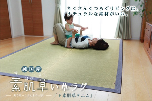 【商品名】純国産/日本製 い草ラグカーペット 『F素肌草デニム』 約191×250cm (裏:ウレタン)