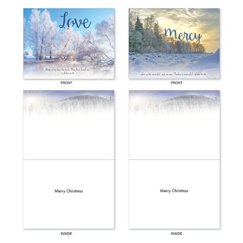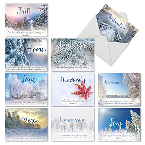 10 beautiful assorted (4'' x 5.125'') Merry Christmas note cards & white envelopes.