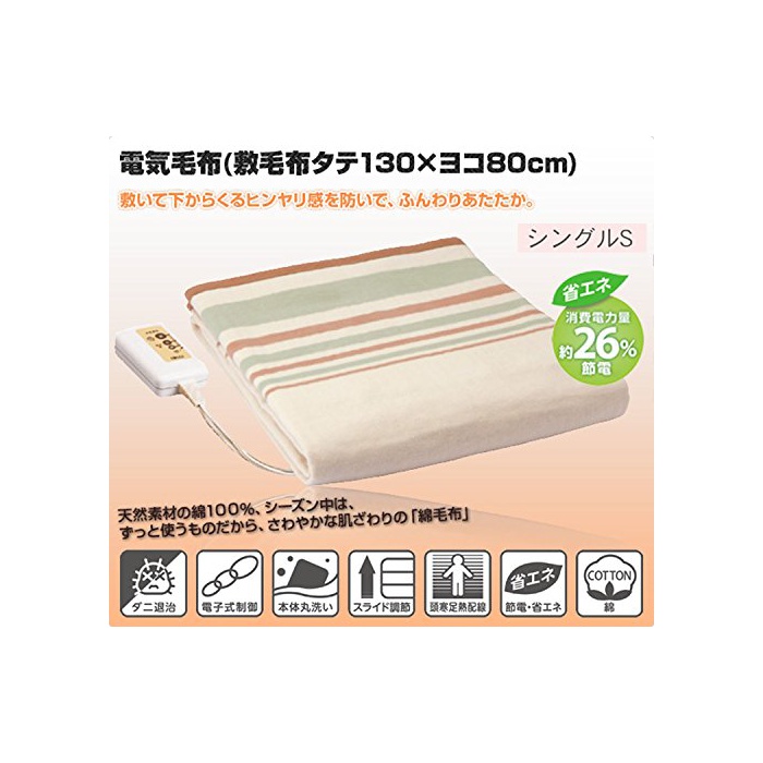 원본상품명:電(KODEN) 電毛布(敷毛布) シングルS(130×80cm) 省エネ 綿タイプ CWS-046G-5