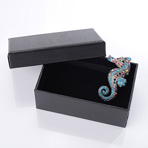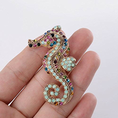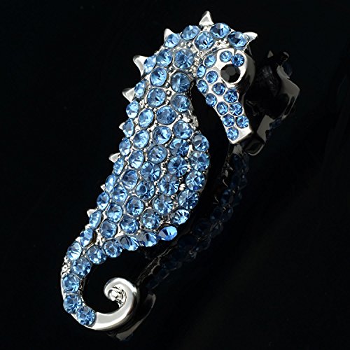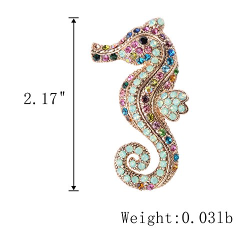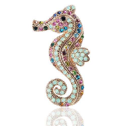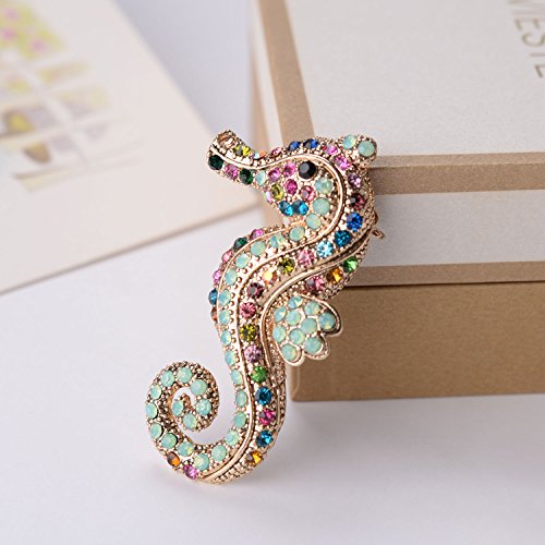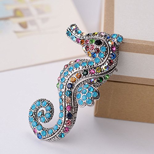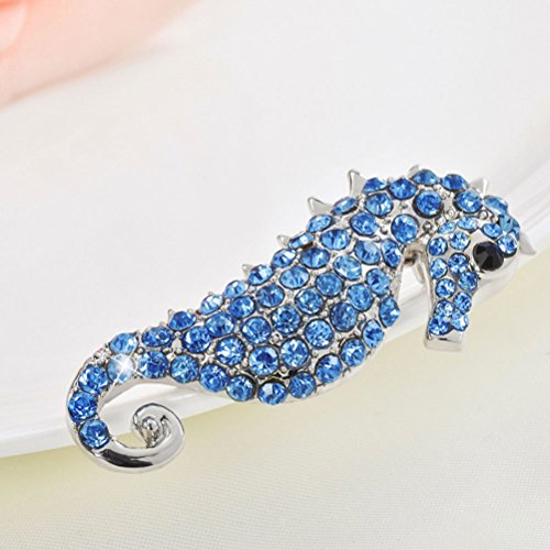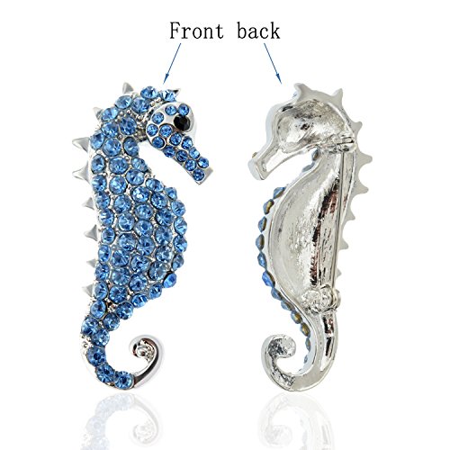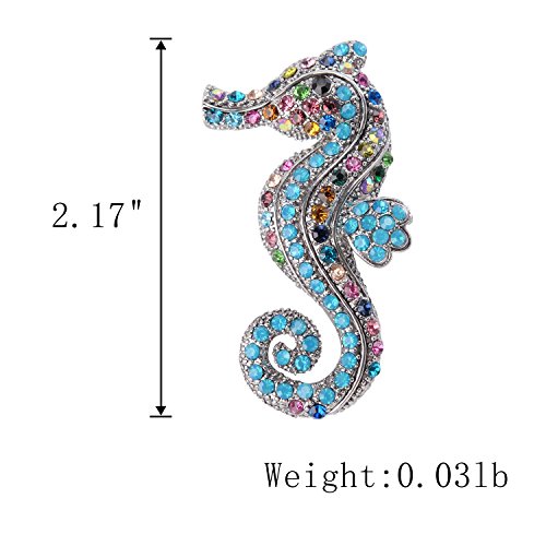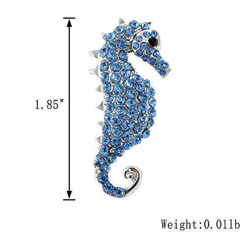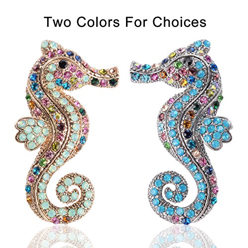 TAGOO Noble Peacock Bird Swan Vintage Monkey Seahorse Dolphin Snoopy Animal Brooches Pins Corsages Scarf Clips in Crystal Unisex Women&Men (Seahorse Blue 1.85"H)
