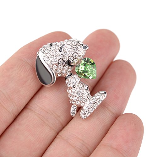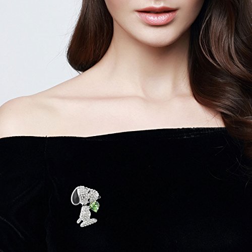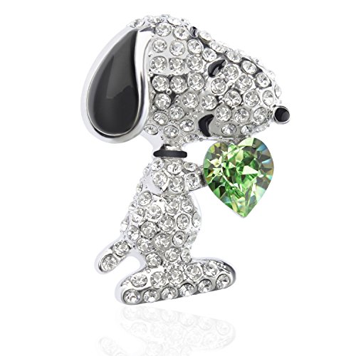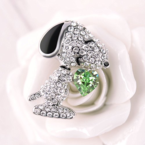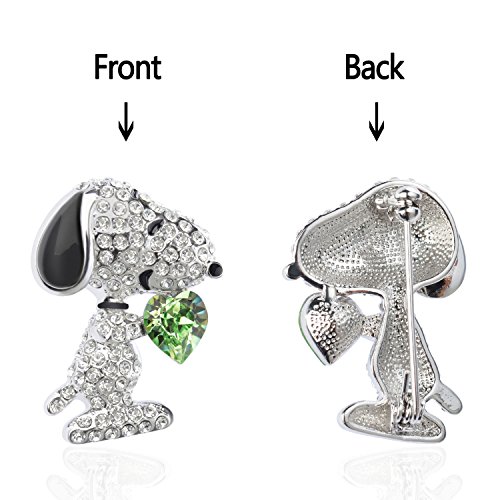 TAGOO Noble Peacock Bird Swan Vintage Monkey Seahorse Dolphin Snoopy Animal Brooches Pins Corsages Scarf Clips in Crystal Unisex Women&Men (Snoopy Design Green Heart 1.26"H)