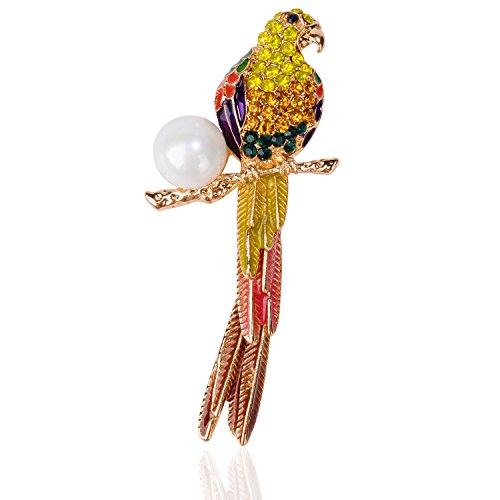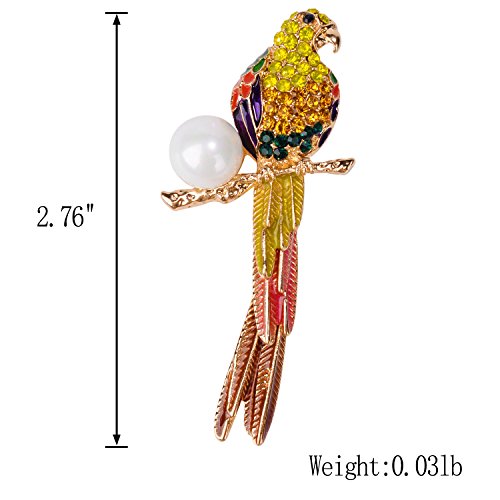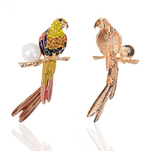 TAGOO Noble Swan Vintage Monkey Seahorse Dolphin Snoopy Animal Brooches Pins Corsages Scarf Clips in Crystal Unisex Women&Men (Imitation Pearl Colorful Parrot Brooch 2.76")