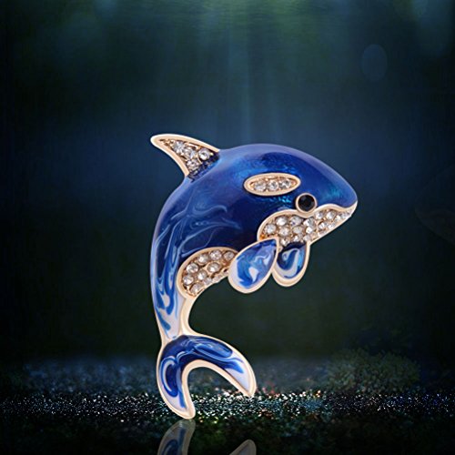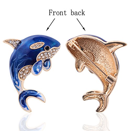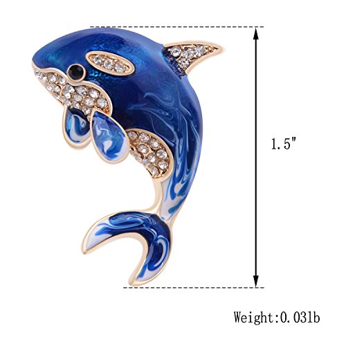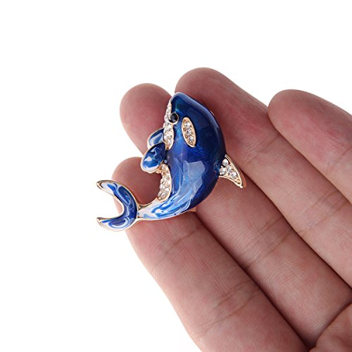TAGOO Noble Swan Vintage Animal Brooches Pins Corsages Scarf Clips in Crystal Unisex Women&Men (Blue Dolphin 1.5")
