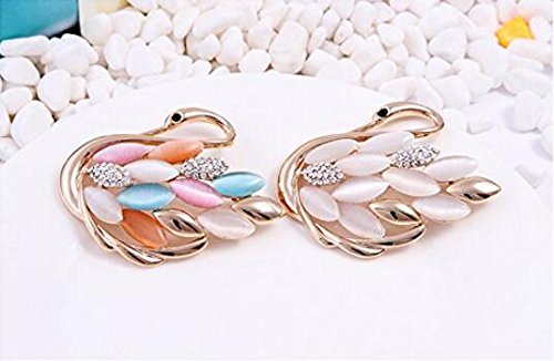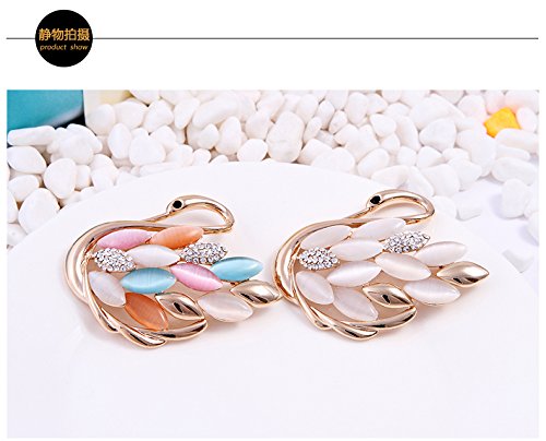 TAGOO Noble Peacock Bird Swan Vintage Monkey Seahorse Dolphin Snoopy Animal Brooches Pins Corsages Scarf Clips in Crystal Unisex Women&Men (Elegant Swan 2pcs (Clear+Colorful))