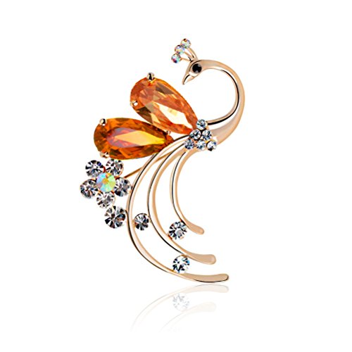 TAGOO Noble Swan Vintage Monkey Seahorse Dolphin Snoopy Animal Brooches Pins Corsages Scarf Clips in Crystal Unisex Women&Men (Yellow Peacock Bird 1.65"x2.0")