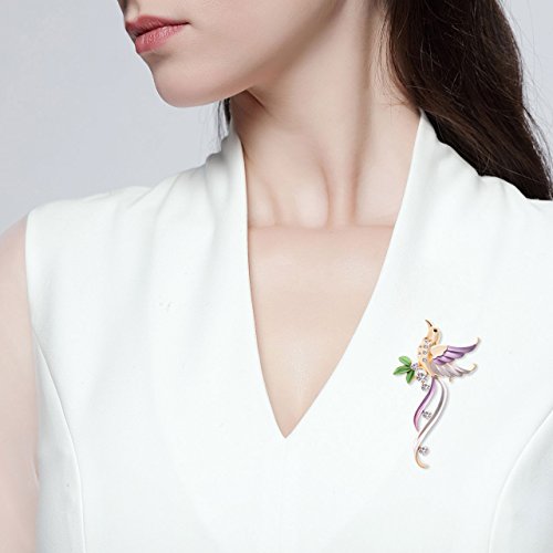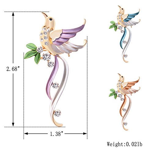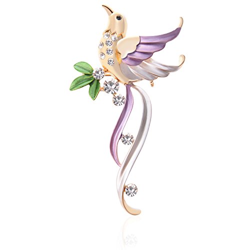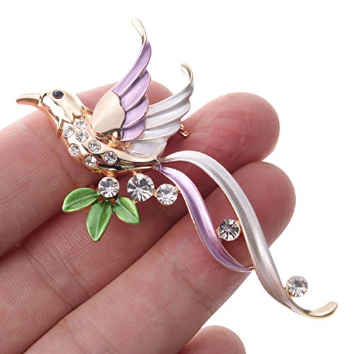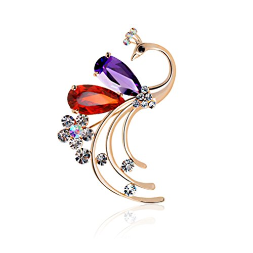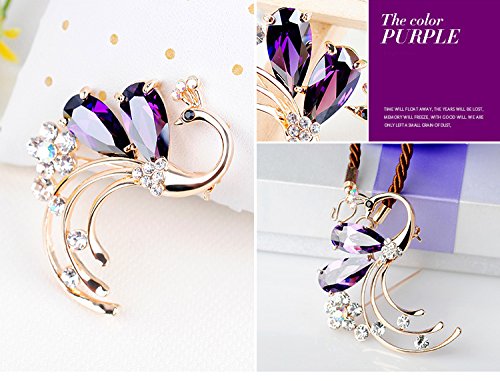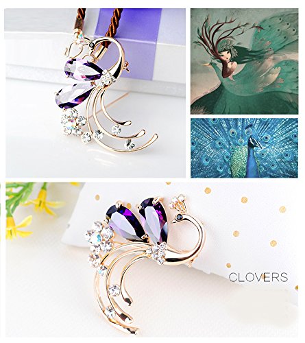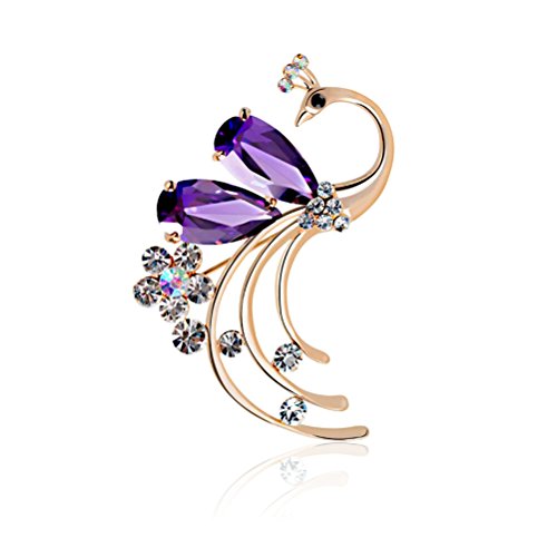 TAGOO Noble Swan Vintage Monkey Seahorse Dolphin Snoopy Animal Brooches Pins Corsages Scarf Clips in Crystal Unisex Women&Men (Purple Peacock Bird 1.65"x2.0")