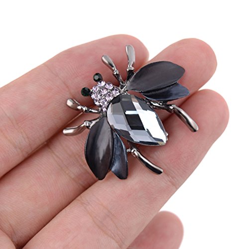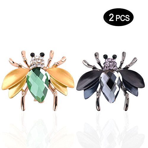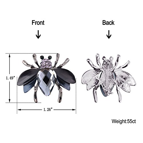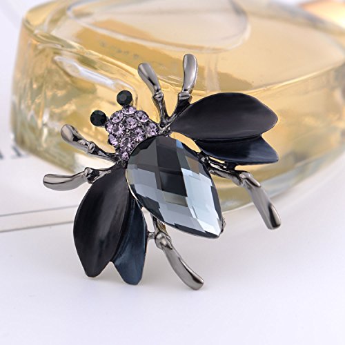 TAGOO Noble Peacock Bird Swan Vintage Monkey Seahorse Dolphin Snoopy Animal Brooches Pins Corsages Scarf Clips in Crystal Unisex Women&Men (2 PCS Black Bee Brooch 1.49"x1.26")