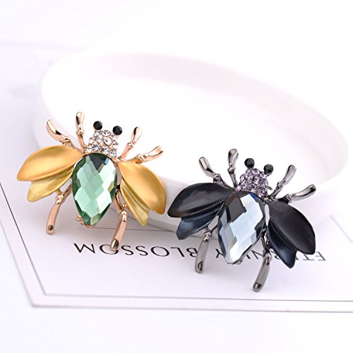 TAGOO Noble Peacock Bird Swan Vintage Monkey Seahorse Dolphin Snoopy Animal Brooches Pins Corsages Scarf Clips in Crystal Unisex Women&Men (2 PCS Bee Brooch (Black+Yellow) 1.49"x1.26")