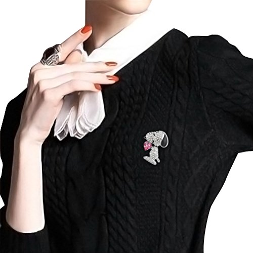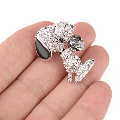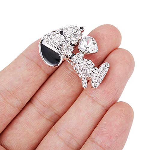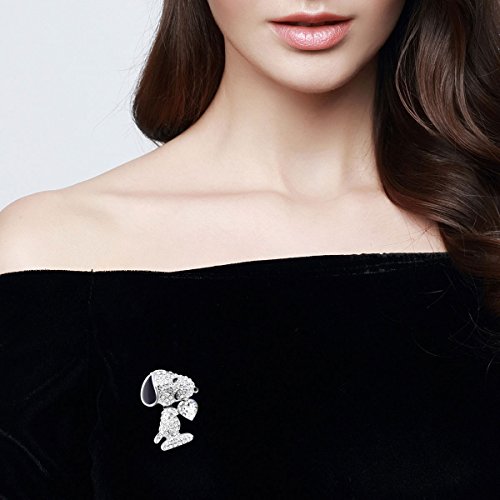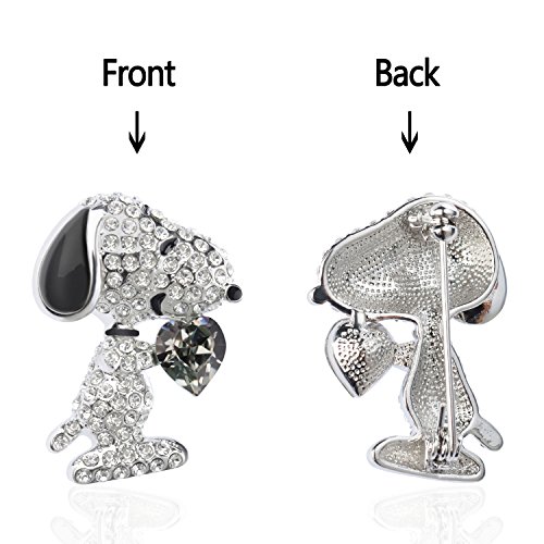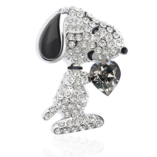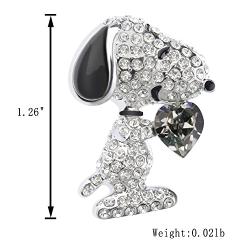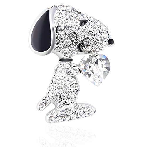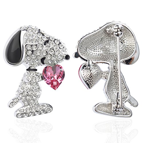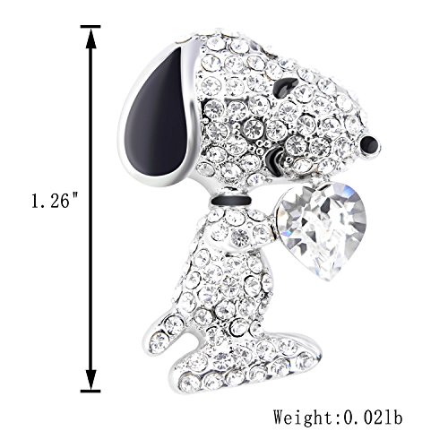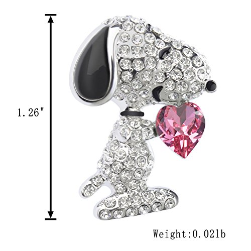 TAGOO Fashion Peacock Bird Swan Vintage Monkey Seahorse Dolphin Snoopy Animal Brooches Pins Corsages Scarf Clips in Crystal Unisex Women&Men (Snoopy Design Clear Heart 1.26"H)