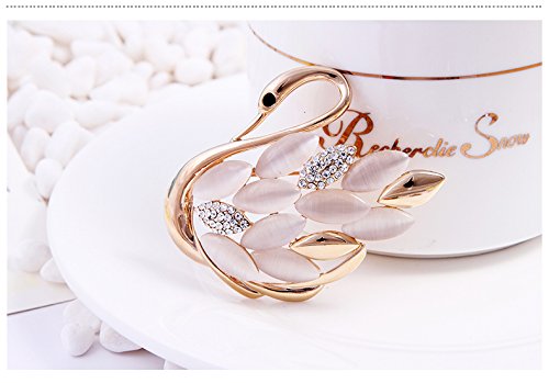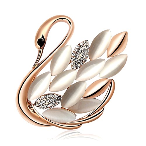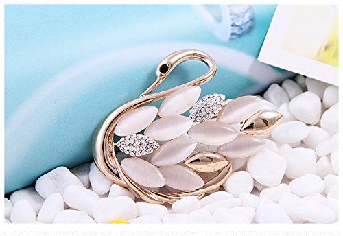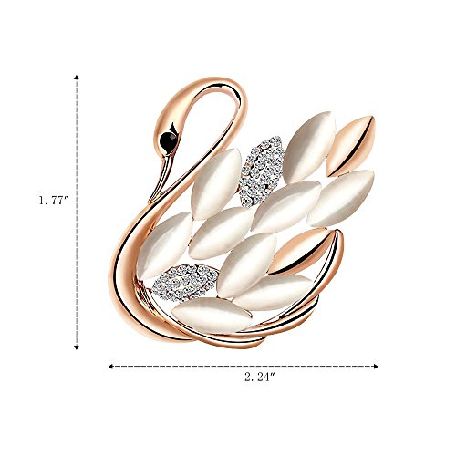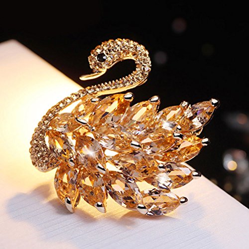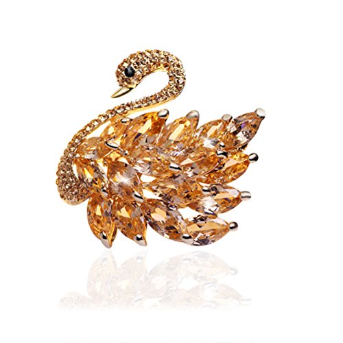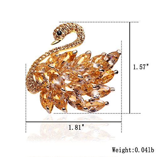TAGOO Noble Peacock Bird Swan Vintage Monkey Seahorse Dolphin Snoopy Animal Brooches Pins Corsages Scarf Clips in Crystal Unisex Women&Men (Elegant Swan CZ Champagne 1.57"x1.81")