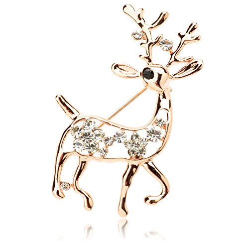 TAGOO Golden Deer Animal Brooches Safety Pins Corsages Scarf Clips in Crystal Unisex Women&Men (Gold Deer)