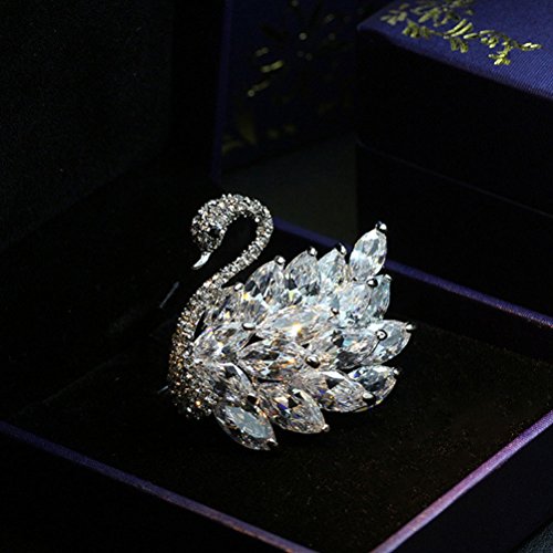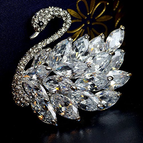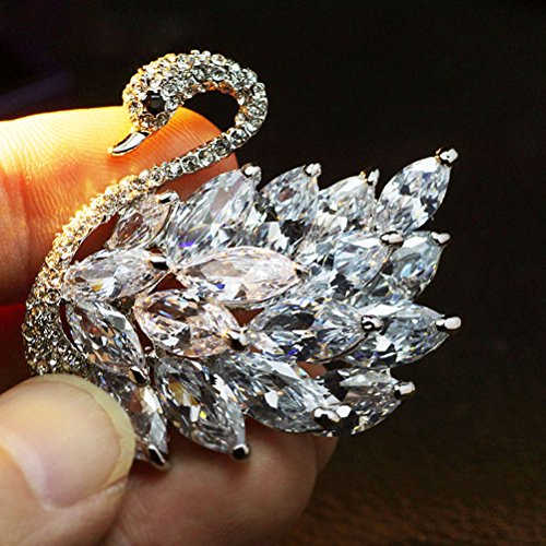 TAGOO Noble Peacock Bird Swan Vintage Monkey Seahorse Dolphin Snoopy Animal Brooches Pins Corsages Scarf Clips in Crystal Unisex Women&Men (Elegant Swan CZ Clear 1.57"x1.81")