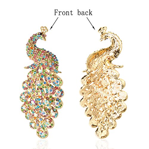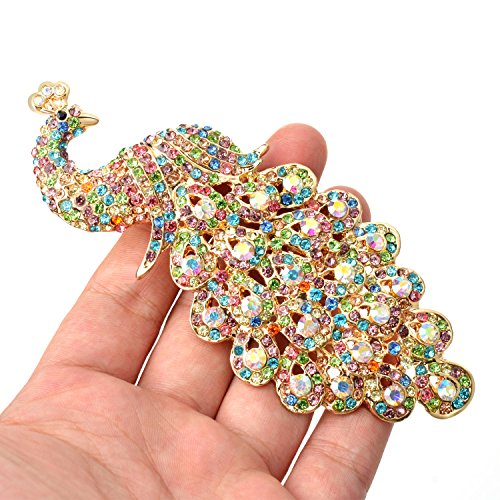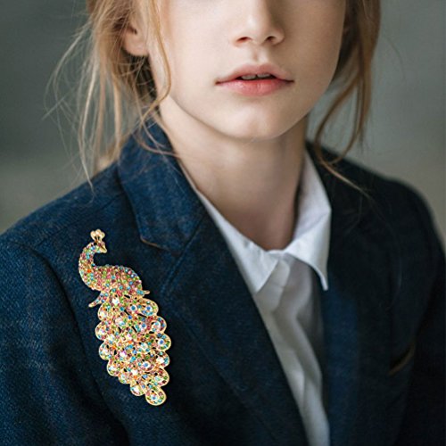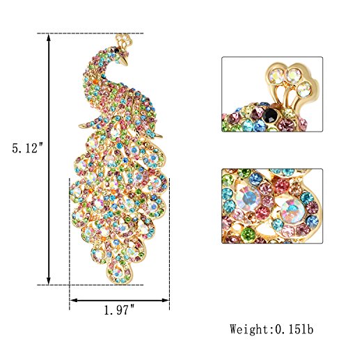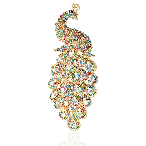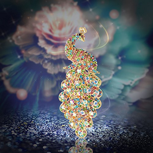 TAGOO Noble Peacock Bird Swan Vintage Monkey Seahorse Dolphin Snoopy Animal Brooches Pins Corsages Scarf Clips in Crystal Unisex Women&Men (Peacock Multicolor Rhinestone 5.12"x1.97")