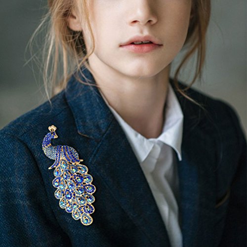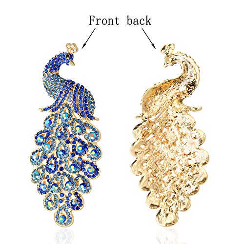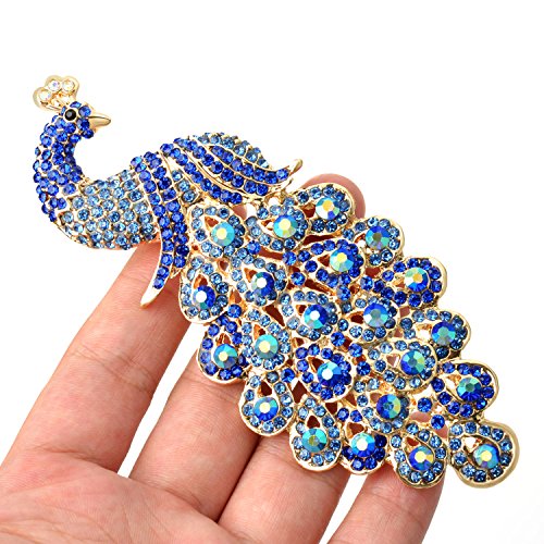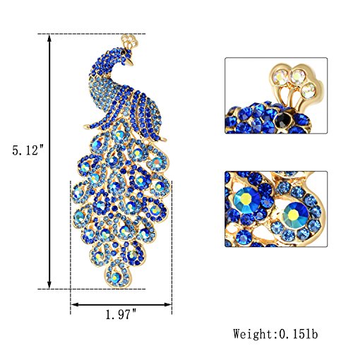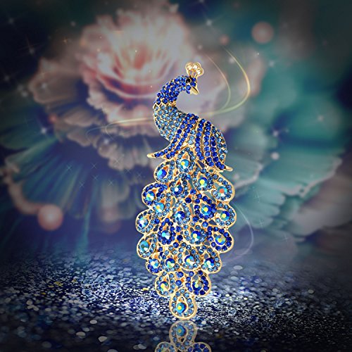 TAGOO Noble Peacock Bird Swan Vintage Monkey Seahorse Dolphin Snoopy Animal Brooches Pins Corsages Scarf Clips in Crystal Unisex Women&Men (Peacock Blue Rhinestone 5.12"x1.97")