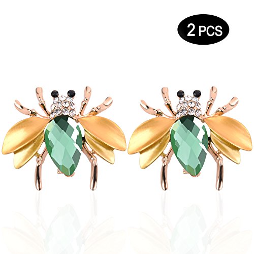 TAGOO Noble Peacock Bird Swan Vintage Monkey Seahorse Dolphin Snoopy Animal Brooches Pins Corsages Scarf Clips in Crystal Unisex Women&Men (2 PCS Yellow Bee Brooch 1.49"x1.26")