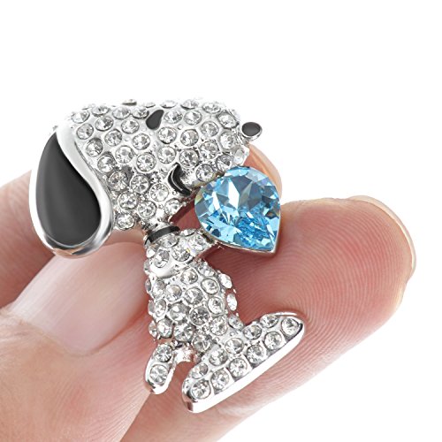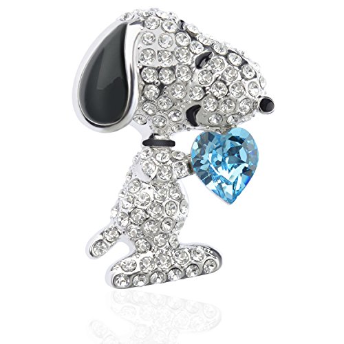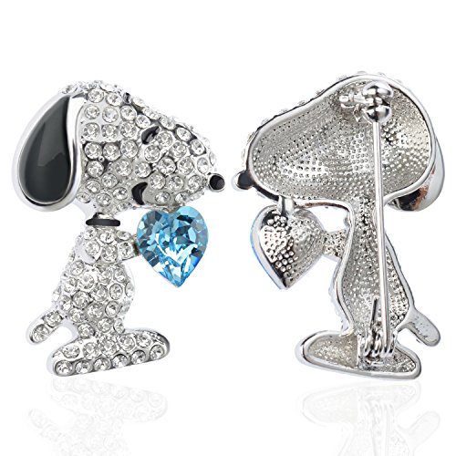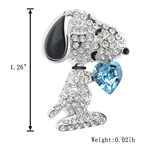 TAGOO Noble Peacock Bird Swan Vintage Monkey Seahorse Dolphin Snoopy Animal Brooches Pins Corsages Scarf Clips in Crystal Unisex Women&Men (Snoopy Design Blue Heart 1.26"H)