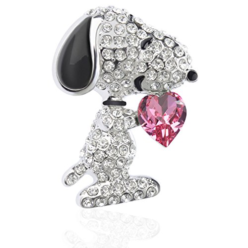 TAGOO Noble Peacock Bird Swan Vintage Monkey Seahorse Dolphin Snoopy Animal Brooches Pins Corsages Scarf Clips in Crystal Unisex Women&Men (Snoopy Design Pink Heart 1.26"H)