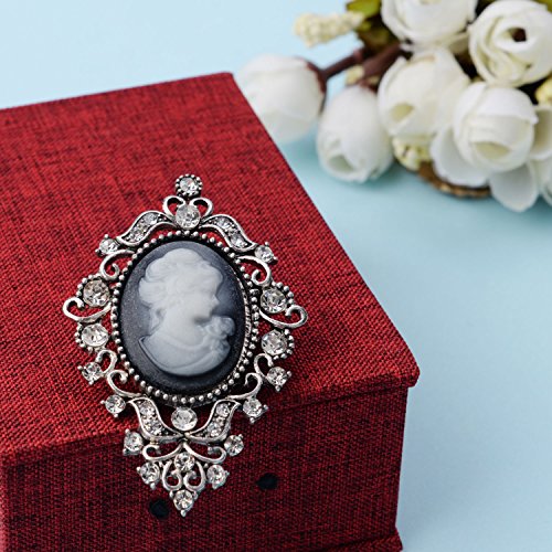 TAGOO Womens Antique Vintage Cameo Brooch Crystal Rhinestone Victorian Portrait Design Lady Pins