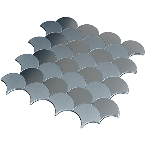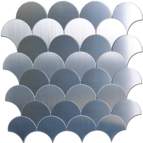 Art3d 12" X 12" Peel & Stick Metal Decorative Wall Tile, Brush Silver Umbrella