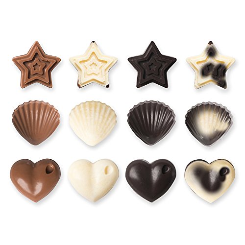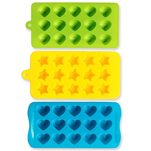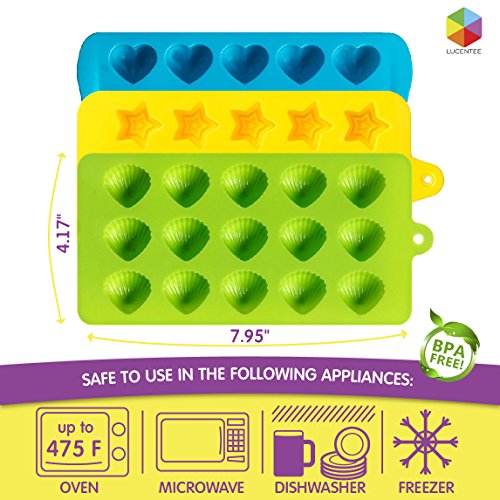 Candy Molds & Silicone Chocolate Mold | Jello & Ice Cube Trays | Set of 3 | Non Stick & BPA Free | Hearts, Stars & Shells - by Lucentee