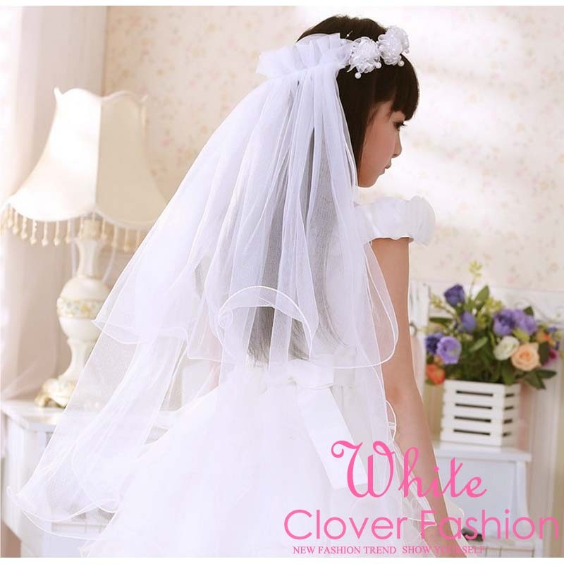 「店内任意商品と一緒に購入する場合は送料無料、手動で送料を修正」子供 こども パールベール ベール 縦約75cm横20cm パール ショート ミドル 1枚レース スタイル自由 結婚式 挙式 花嫁 二次会 パーティー セレモニー ヴェール ビーディング ビーズ 衣装 コスプレ 仮装
