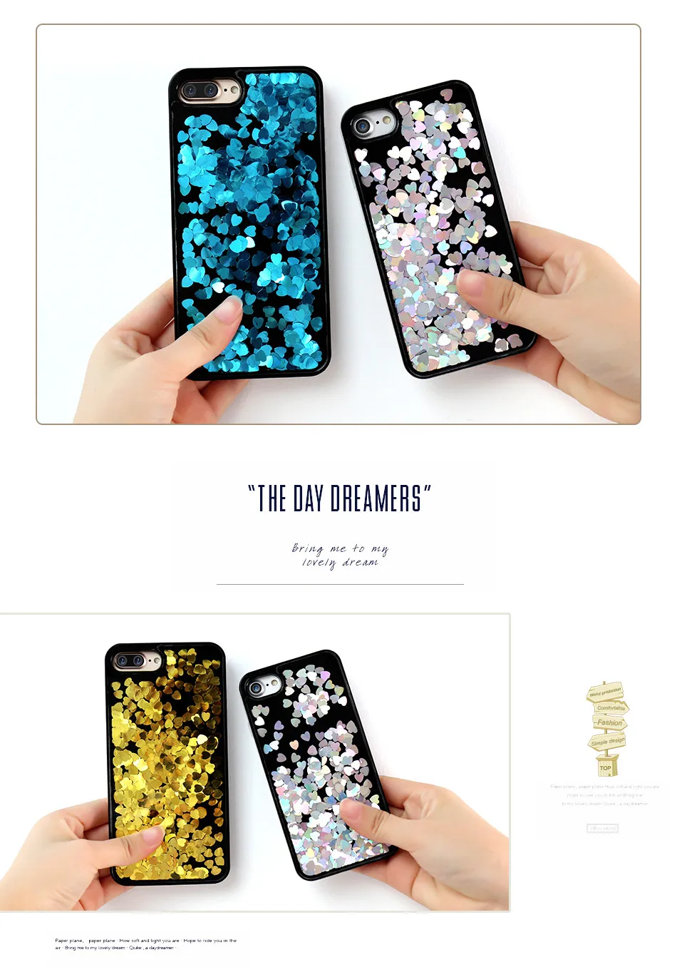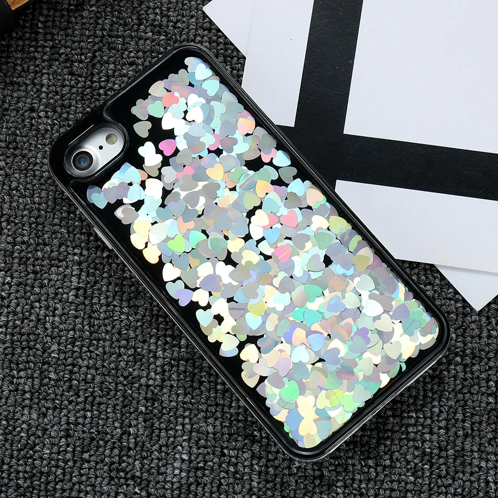 Feature 2:Clear Hard Girls Back Cover Capa Glitter Love Heart Sequin