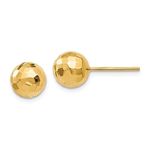 Solid 14k Yellow Gold Polished Faceted Post Earrings (8mm x 8mm)