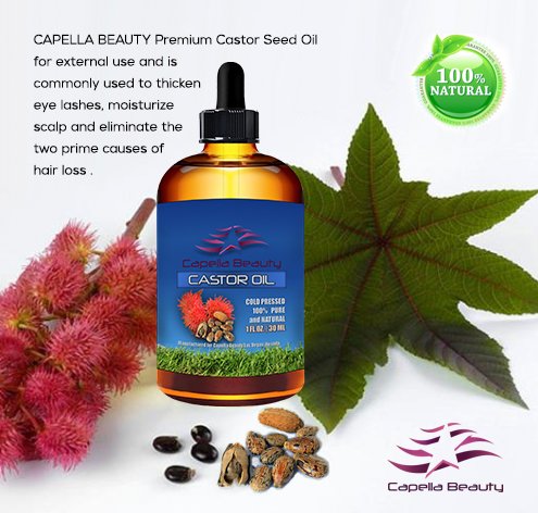 - 💓 CAPELLA BEAUTY Premium Castor Seed Oil for external use and is commonly used to thicken eye lashes, moisturize scalp and eliminate the two prime causes of hair loss