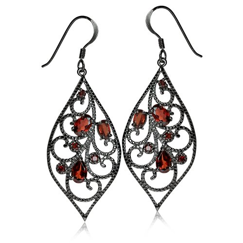 Natural Garnet 925 Sterling Silver Drop Dangle Earrings