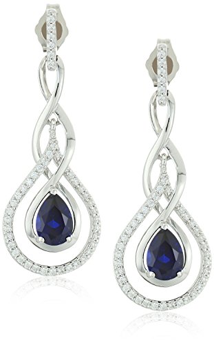 Sterling Silver Pear Shape Lab Created Sapphire and Cubic Zirconia Dangle Earrings