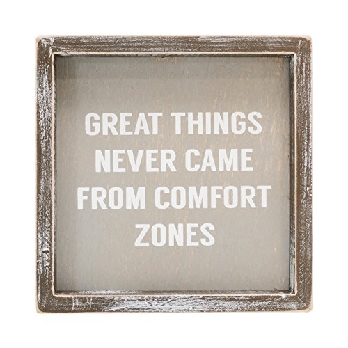 Great Things Never From Comfort Zones 8 x 8 Inch Wood Framed Hanging Wall Plaque