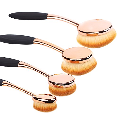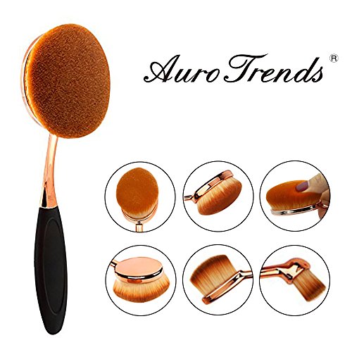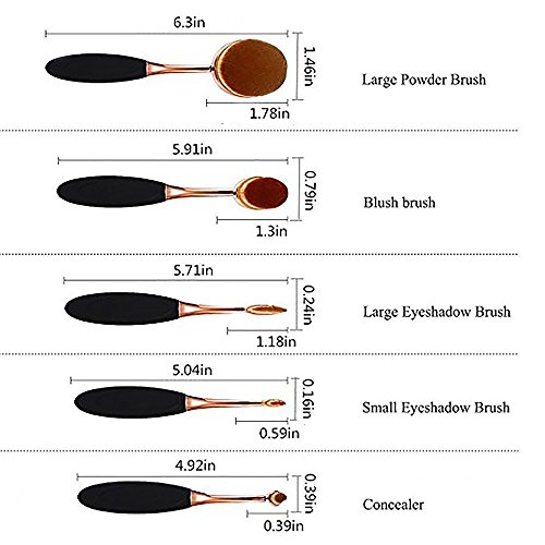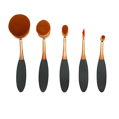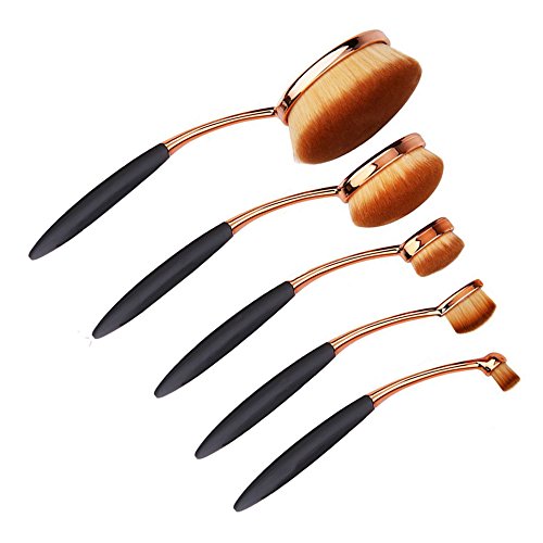 AuroTrends 5 Pcs Oval Makeup Brush Set- Professional Foundation Contour Blush Concealer Eyebrow Eyeliner Blending Cosmetics Brushes Toothbrush Makeup Brushes Kit (Black Rose Gold)