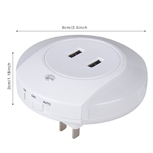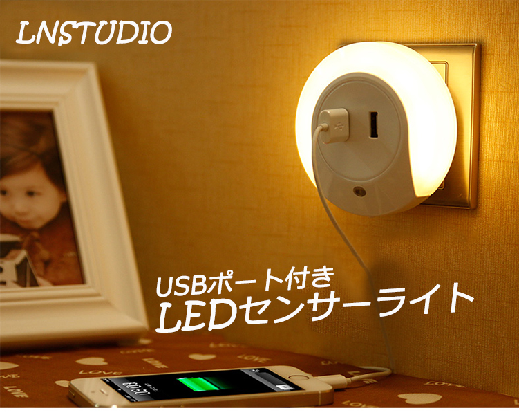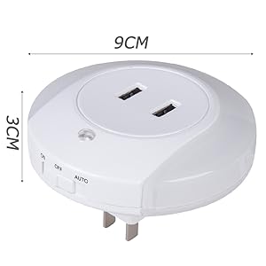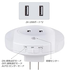 2個USBポートがついた便利なナイトライトは同時に2台デバイスにサポートします。