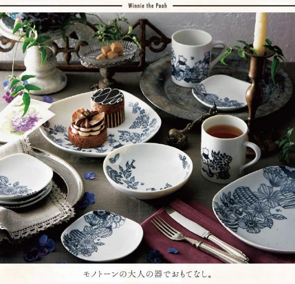| 「クマのプーさん」と北欧テイストのボタニカルなアートを組み合わせたモダンデザインが食卓に溶け込みます。柔らかな色合いの表面にモノトーンのデザインが大人っぽいイメージを印象付けます。 |