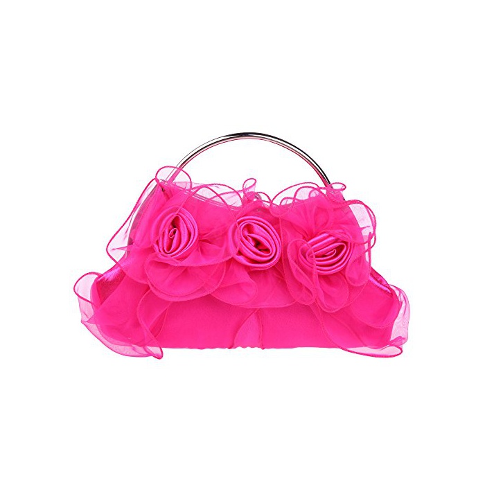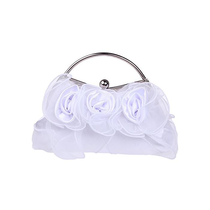 Fawziya 범모습아 (《후우지야》) Fawziya 새틴 입체 장미 금속 핸들 클러치 백 2way 결혼식 파티 백 로즈-실버