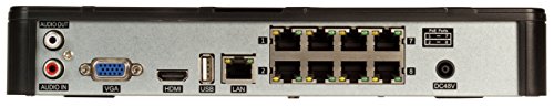 - Video and Audio Ports: Video In 8 RJ45 POE Video Out HDMI, VGA Alarm In 8 (through IP cameras) Alarm Out 0 Audio In 1 RCA, 8 through IP cameras Audio Out 1 RCA