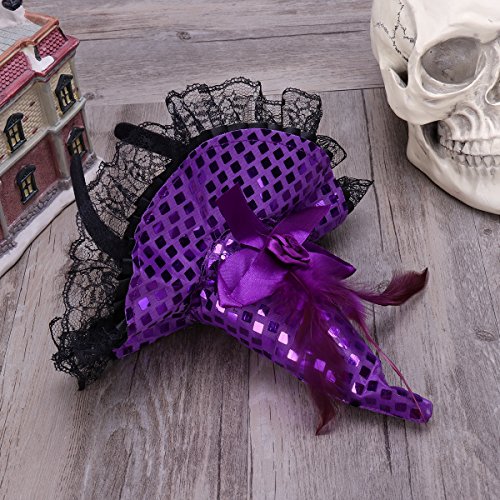 -. Title : OULII Kids Halloween Headband with Feather Witch Hat for Costume Dress up Party Supplies (Purple)