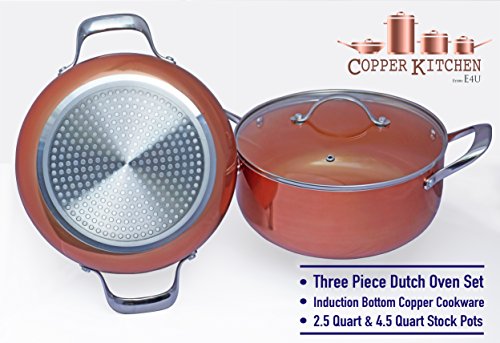 Studio : E4U Publisher : E4U Product Description When you are looking for quality that lasts, it is not the price tag you are looking for it is quality construction, premium materials and exceptional customer service. Copper Kitchen was created by Andrea, the founder of E4U, for use in her (yes proud female owned business) own kitchen. #x1F31F;DON'T SETTLE FOR AVERAGE #x1F31F; Competitors Copper Casseroles are not real Copper. Only Copper Kitchen Pots feature True Metalized Copper Mirrored Copper Finish. Ask yourself? At the end of the day will a pot by any other name do what you need it to? Skillet, Dutch oven, frying pan, casserole, pot, cookware, wok. What will you find when you open your Box? Great Question! Oven Safe Copper Cookware Nonstick Pfluoun Copper Ceramic Technology 3.0mm Solid Cast Aluminum Core Honeycomb Induction Bottoms True Mirrored Metalized Copper 2.5 Quart Round Copper Chef Pot 4.5 Quart Induction Bottom Stock Pot Heavy Gauge Stainless Steel Handles Tempered Vented Glass Lid #x1F31F;SPACE MATTERS - DITCH THE BULK #x1F31F; We designed the Copper Kitchen Dutch Oven Set with no detail left to chance. They are the only Copper Pan Set that are Compact and Space Saving without Sacrificing quality. The entire set stacks together and measures only 6 inches tall for convenient storage in both large and small kitchens alike. Just Released Limited-Time Offer, Super Sale! REG.$199.99 Super Sale: $119.99 0 |