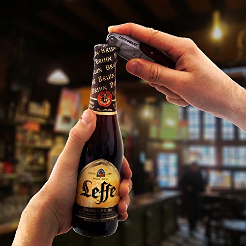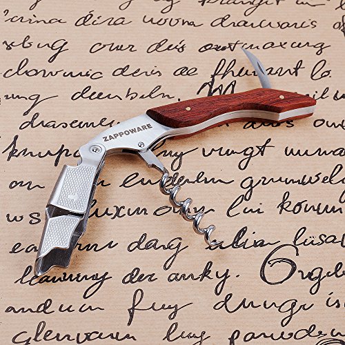 - HIGH QUALITY, COMPACT SIZE FOR THE BEST PRICE. The ZAPPOWARE bottle opener and the corkscrew is made of indestructible 420 stainless steel to open countless beer bottles and wine corks without getting the dull or losing shape. The handle is made of natural rosewood. The accessory is lightweight: 4 ounces and compact: 4.9 x 1.4 x 0.8 inches.